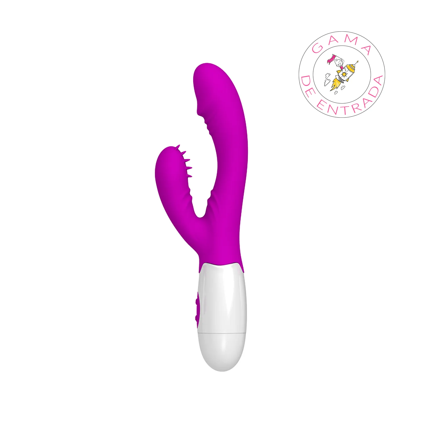 Andre es un vibrador y Estimulador de Clitoris especialmente diseñado para la penetración vaginal y estimulación de clítoris en forma simultánea, con una forma ligeramente curvada para estimular el punto G, incorpora texturas y un estimulador de clítoris muy especial constituido por unas bolitas que oscilan hacia arriba y abajo.