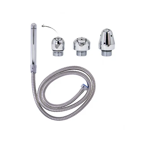 Ducha anal de aluminio con tres cabezales cambiables y adaptador universal.