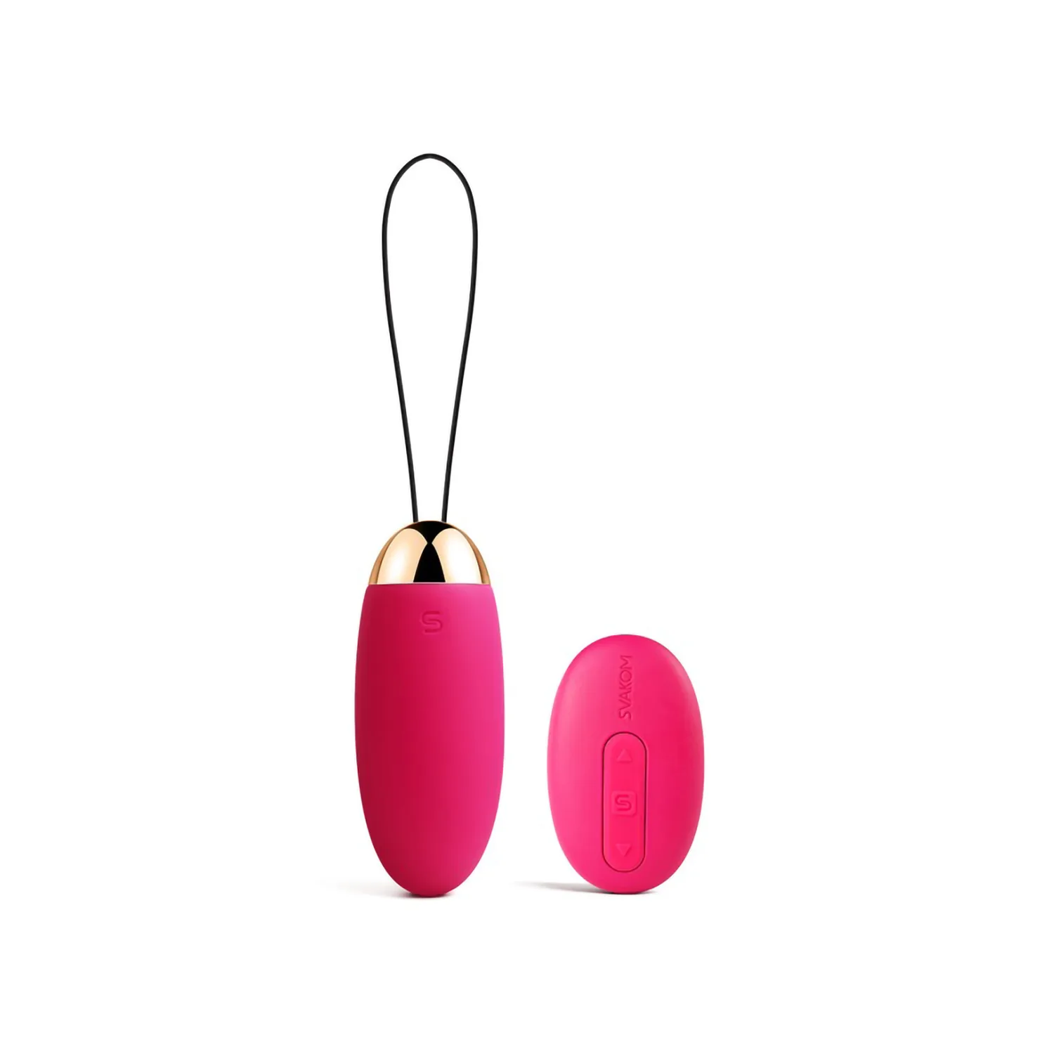 Como es costumbre, Svakom nos presente este magnífico artículo, pensado para jugar en pareja o en solitario. El huevo Vibrador Elva con Control Remoto Svakom está fabricado con silicona de grado médico hipoalergénica, un potente motor Silencioso que permitirá utilizarlo en público o en la intimidad. Cuenta con Svakom Inteligent Mode (imita en gran medida la frecuencia de vibración en todo el proceso sexual desde el principio hasta el orgasmo. Con un solo clic en el botón “S”, puedes comenzar un maravilloso viaje sexual).