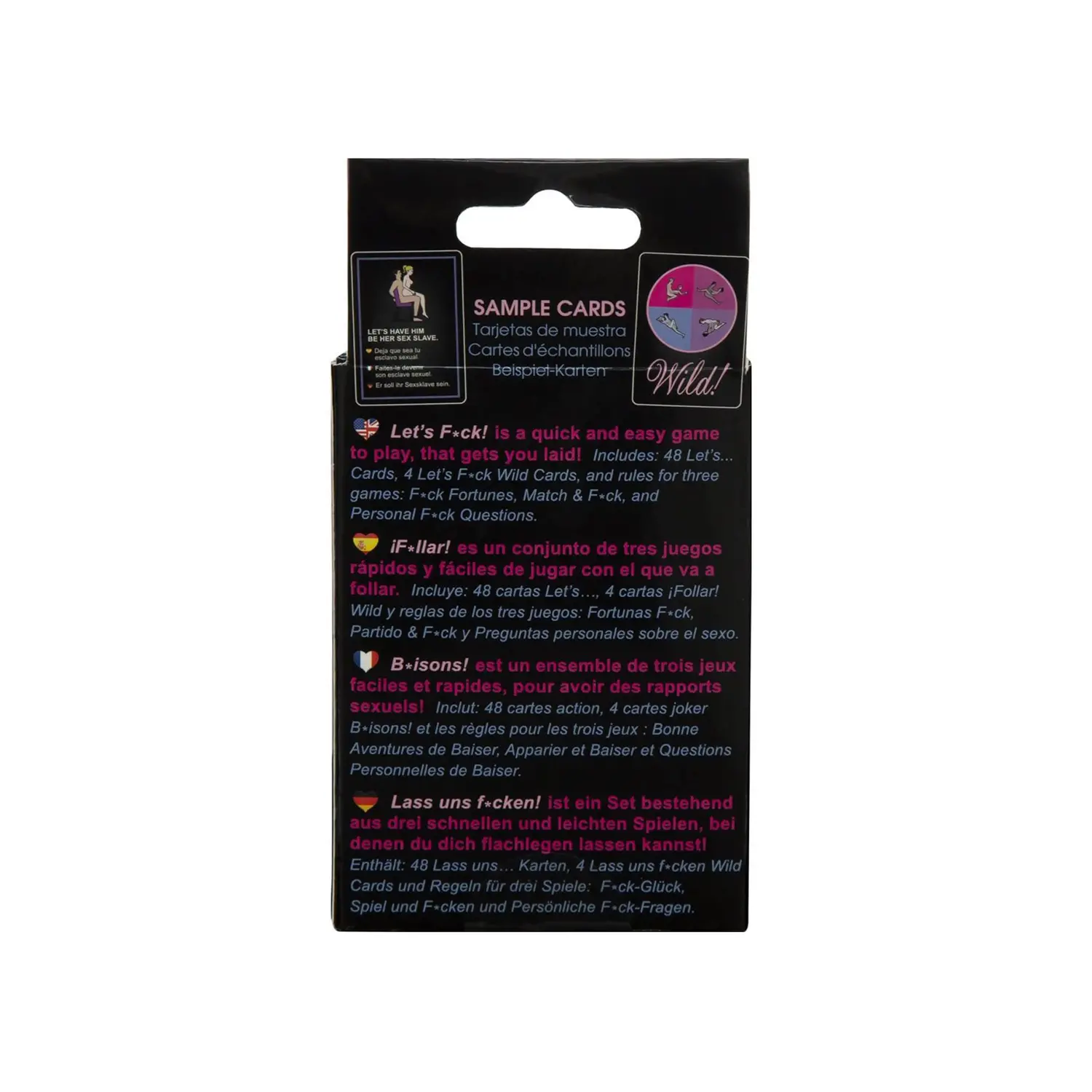 El Juego de Cartas Let’s F*ck! de Kheper Games se puede jugar de 3 maneras diferentes y te brinda 250.000 formas de ganar! Está enfocado en posiciones sexuales, el cual consiste principalmente en realizar las pruebas eróticas que las cartas les irán indicando. El ideal es que cumplas tus fantasías sexuales junto a tu pareja