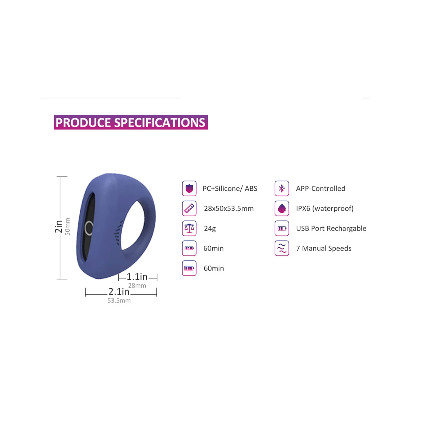 • Control manual con botón físico: 7 funciones de vibración